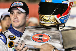 "It was just a solid effort through the whole night," said Johnson. "I think in the middle part of the race we were real quick on short runs, probably one of the better cars but in the long run would burn the right rear tire off of it. As the track changed, we made some small changes and we got that better and better. I tried the top side a little bit. "Kyle (Busch) was having a lot of luck there and making up a lot of ground up there. I tried it and couldn't really make it work for long, and/or just get any speed out of the car doing it. So, went back to the bottom and focused on the bottom. We adjusted the car to run at the bottom and it paid off at the end." Johnson is peaking at the right time, he now has a total of five wins this season and a career 28 victories in 208 attempts. Johnson led 84 of the 250 laps but it was teammate Kyle Busch who led the most (97) laps. Carl Edwards looked for a while near the end of the race, that he may have something for Johnson but wore his tires out trying to catch him. Edwards finished second, Kyle Busch was third and Jeff Burton fourth. “It looked to me like he (Johnson) was searching and he was a little slow," said Edwards. "I thought he was gonna be a sitting duck. I even said to Bob (Osborne) on the radio. I said, ‘I feel like it’s me and Kyle racing for the win here.’ You know Jimmie better than I do, but I don’t think on the last green flag run you’re gonna lay back. He goes pretty hard.” Dale Earnhardt Jr. desperately wanted to win at California, especially after such a poor showing in the spring race when the Dale Earnhardt Inc. engine blew up in only the second race of the season. But it wasn't to be on this Sunday, he finished fifth with teammate Martin Truex Jr. in tow to bring his Chevrolet home in the sixth spot. Earnhardt is now 128 points out of the cutoff 12th place and it would take a miracle to pull off a Chase run this year. The top eight drivers in points have clinched a spot in the Chase so far. It was fun, hot, sweaty and the car was tight, loose, never perfect, but we worked hard. I am tired, real tired," Earnhardt said after dragging himself from the car. ""I don't know much about the system (points), never have. Never cared to. I just go out there as hard as can. It doesn't look like we are going to make it but we aren't going to quit trying. Until they say we aren't in the Chase. Just a long day out there, hot, real hot." Brian Vickers finished eighth followed by Kurt Busch and Kasey Kahne to round out the top ten. Points leader Jeff Gordon, involved in a minor crash with 71 laps to go, could never get his car to handle properly, he finished 22nd on the day and still leads the point standings by 317 over Tony Stewart. "It wasn't a great night. We ran pretty good. There were times when we drove to the front. And we were working on the set-up and making it better and I was pretty happy with that. We made a call to come down pit road and got us in the back and they were two and three wide ahead of me and I tried to make a move to go underneath them and there just wasn't enough room and I actually was trying to squeeze out of it, but I don't know," said Gordon of the wreck. "I've got to watch the video. Somebody was underneath me, pushing me up into I think Jeremy (Mayfield) and he got into the No. 00 (Reutimann)." Ricky Rudd taken to a local hospital to have his left arm checked out. Rudd was involved in the lap 179 wreck that damaged five other cars. Rudd looked to be in pain as he entered the ambulance. 39 laps into the race, Michael Waltrip's was involved in a firey accident. Waltrip had a left front tire rubbing the fender, from contact with Ricky Rudd a few laps earlier. The tire blew out and a fireball erupted in Waltrip's Toyota, but Waltrip was able to extricate himself from the burning vehicle without any apparent injury. “I was trying to get by Ricky (Rudd, No. 88) and he moved over," Waltrip said. "That caved in our left front fender. The tire rubbed and the left front tire blew off. When it blew it took some oil lines with it and those caught fire. The car filled up with smoke and fire. The crew does such a great job at sealing off the interior of the car. I saw just a little bit of flame by the shifter, nothing much. I'm bigger than the car -- if I try to get out of the car in a hurry it is disastrous. I just took my time and took my stuff off. Right there at the end is when it started to flame and smoke up and I had to get out in a hurry. That is why I'm so thankful the Car of Tomorrow is here because I just can't get out of these cars in a hurry. I've tried it at the shop -- basically I have to take my helmet off to get out. It was a short day for the NAPA Toyota, it was pretty fast before this happened." David Ragan scored a 12th-place finish and took Raybestos Rookie of the Race honors for the 10th time this season. The first half of the race we probably didn’t have the best car and then I found the car worked pretty good on the topside and I ran the topside with new tires, old tires," said Ragan. "It seemed like whenever I wanted to -- it was pretty fast. We had a great car, other than my mistakes pitting on pit road and blending a little too early we might could have had a car to finish in the top-five or contend for a win. A small mistake just hurt us like that.” Ragan was penalized for speeding but realized his mistake a little too late. “I just gassed it a little too early," Ragan continued. "We had a good stop. When you’re right there on the speed limit going down pit road and if you hit it just a split second too early it reflects on your speed there that last mark and that’s where we got busted at.”